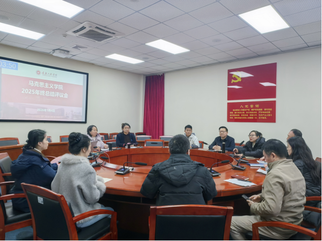 本网讯(文/图 马克思主义学院 刘爽)2026年1月4日,马克思主义学院在第三会议室组织召开2025年终总结评议会。党委书记陈长虹出席,学院领导及教研室主任参加会议。会议由马克思主义学院党总支书记、院长王巧玲主持。