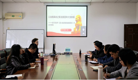 本网讯(文/图 马克思主义学院 周建武)为推动党的创新理论入脑入心、落地课堂,构建学习-研讨-转化闭环机制,践行教师“好习惯清单”,打造政治强、情怀深、思维新、视野广、自律严、人格正的思政课教师队伍,马克思主义学院开展读原著・学原文・悟原理教师理论提升专项行动,并于3月25日下午,召开“经典书屋”读书沙龙启动会暨2026年第1期读书活动。首期研读分享题目是《以自我革命之笔 绘就百年大党新篇章》,由“习近平新时代中国特色社会主义思想概论”教研室教授刘锐作主题报告。学院党总支书记、院长王巧玲,院长助理张康伟出席,全体思政课教师参加。