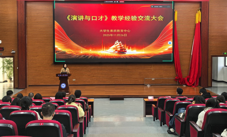 11月26日下午,2025年度《演讲与口才》教学经验交流大会在7教报告厅召开。副校长王建东出席,各二级学院党总支书记、《演讲与口才》课程指导教师和全体助教共300余人参会。会议由《演讲与口才》课程负责人邹春霞教授主持。
