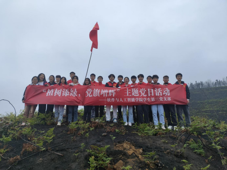 (文/图 软件与人工智能学院 钟欣桐/王瑞浩)为深入学习雷锋精神,大力弘扬无私奉献觉悟,我院学生第三党支部于2023年3月24日在巴南区新玉村开展了“植树添绿,党旗增辉”主题党日活动。本次活动由支部书记王芳带队,学生党员共20人参加。