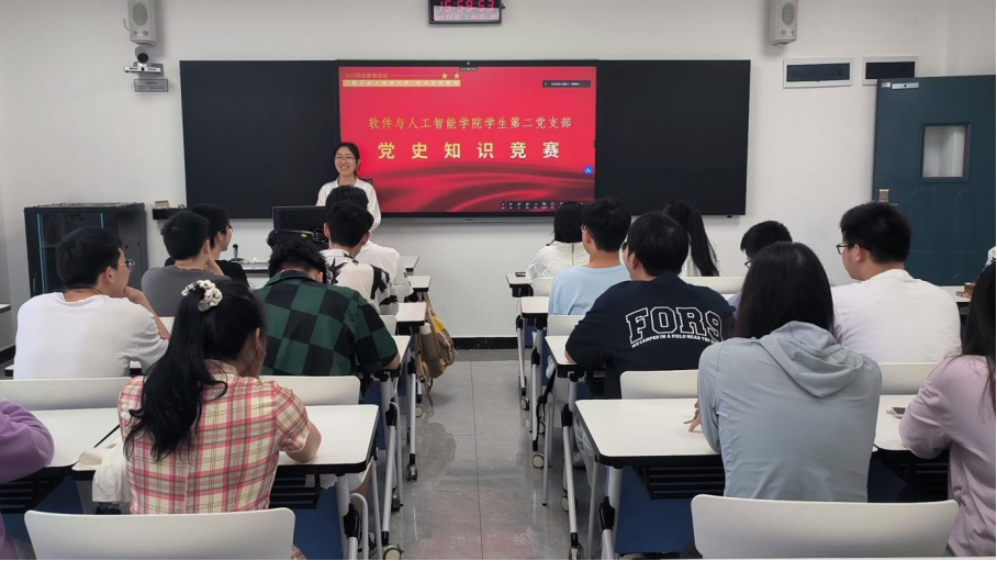 (文/图 软件与人工智能学院 胡才静)为强化同志们的学习意识,深入贯彻学习党的二十大会议精神,软件与人工智能学院学生第二党支部于4月16日在7209教室开展了“学党史,展新风”党史知识竞赛主题党日活动。学生第二党支部支部书记余巧、学生党员、发展对象共40余人参加。