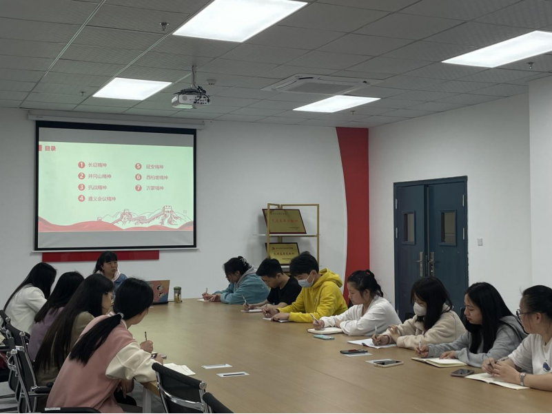 王薇同志领学《中国共产党红色精神学习》,带领党员同志一起学习了长征精神、井冈山精神、抗战精神、遵义会议精神等七大红色精神,伟大的长征精神是中国共产党人革命风范的生动反映,党员同志们要不断结合实际传承好,弘扬好,内化于心,外化于行,时刻从实际出发,将理论知识转化为实际行动,以实践检验学习情况。随后,王薇同志了解了各位学生党员近期思想、学习、工作和生活等方面的情况,并表示党员同志是群众的榜样,不仅要做好模范带头作用,更要时刻团结群众,了解群众,帮助群众。