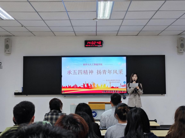 (文/图 软件与人工智能学院 池玉华/肖遥)5月10日,软件与人工智能学院学生党员实践教育分中心在6210教室组织开展“承五四精神 扬青年风采”五四分享会。软件与人工智能学院入党积极分子、发展对象、党员(预备党员)共五十人参加。
