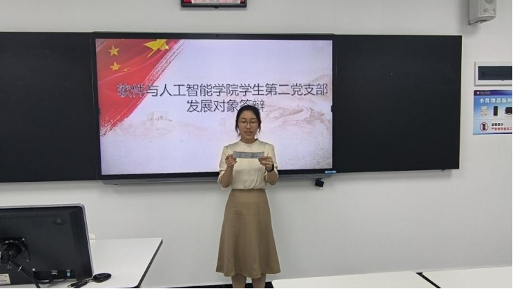 (文/图 软件与人工智能学院 胡才静)5月18日,软件与人工智能学院学生第二党支部在7207教室开展了发展对象汇报答辩会。本次答辩会由软件与人工智能学院学生第二党支部书记余巧、李阳老师、彭丽老师、学生党员及发展对象共50余人参加。