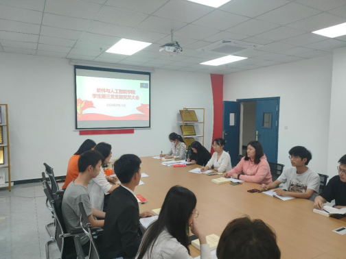 (文/图 软件与人工智能学院 王瑞浩)为进一步加强和推进党员队伍建设,切实提高党员发展质量,软件与人工智能学院学生第三党支部于5月23日在7205召开了支部党员大会,讨论关于吸收冉松、杨帆、郑晓龙等7名同志为预备党员的事宜。会议支部书记王芳,支部全体党员、预备党员参与。