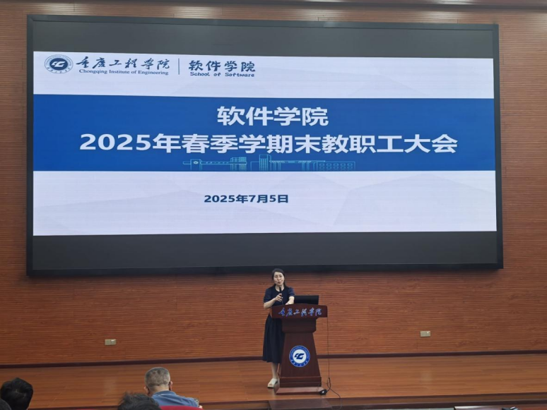(文/图 软件学院 孟丽娟)为系统总结学期工作,部署暑期重点任务,7月5日,软件学院在7807报告厅召开2025年春季学期末教职工大会。学院党总支书记刘子菱书记主持,学院党政领导班子及全体教职工参会。