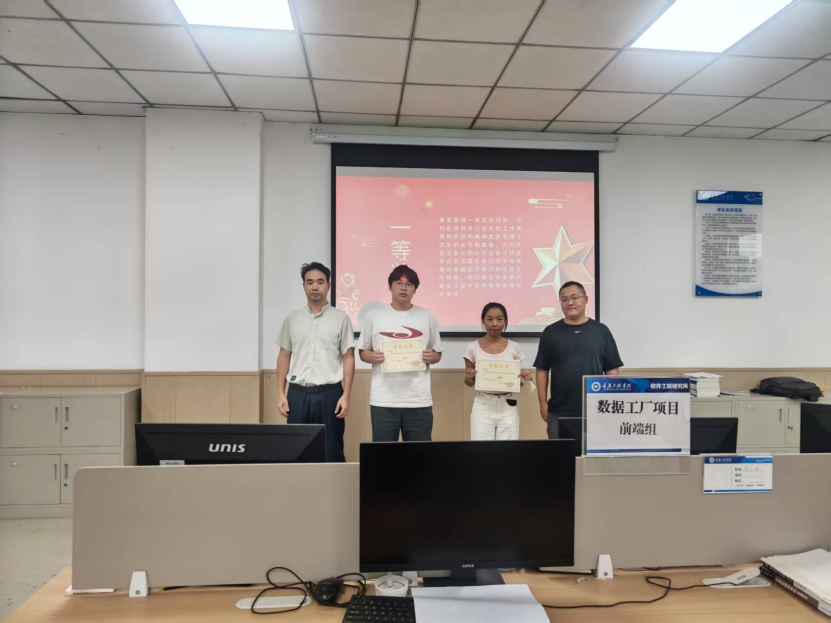 (图/文 软件工程研究所 郑明月)2025年7月3日,软件工程研究系统开发部负责人熊磊、测试团队负责人雷大彬以及相关教师在3教211举行实训颁奖典礼,此次活动对2025年5月至6月期间表现优异的实训学生进行表彰。本次实训共有88名学生参与,其中28名学生参与了具体项目,活动旨在总结实训成果,激励学生在实践中不断成长。