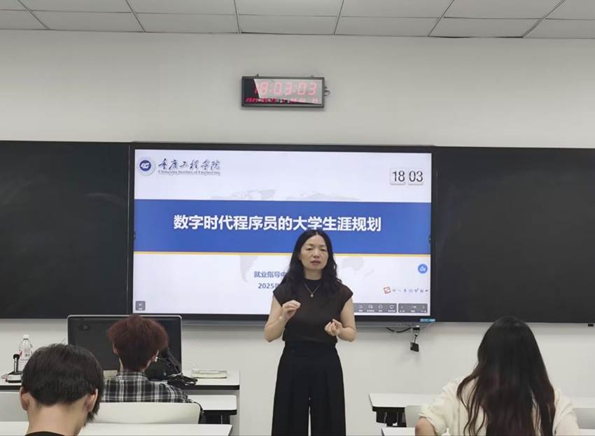 本次活动特邀就业指导中心黄梅老师担任主讲。她围绕“职业目标定位方法”“霍兰德人格类型与岗位匹配”“软件开发职业发展路径”三大模块展开分享,将行业趋势与真实案例深度融合,结合多年指导经验为同学们解析各类职业方向的特点与要求。黄老师特别强调:“早规划、早实践是提升就业竞争力的关键,同学们要结合自身特点选择适合的发展赛道。”