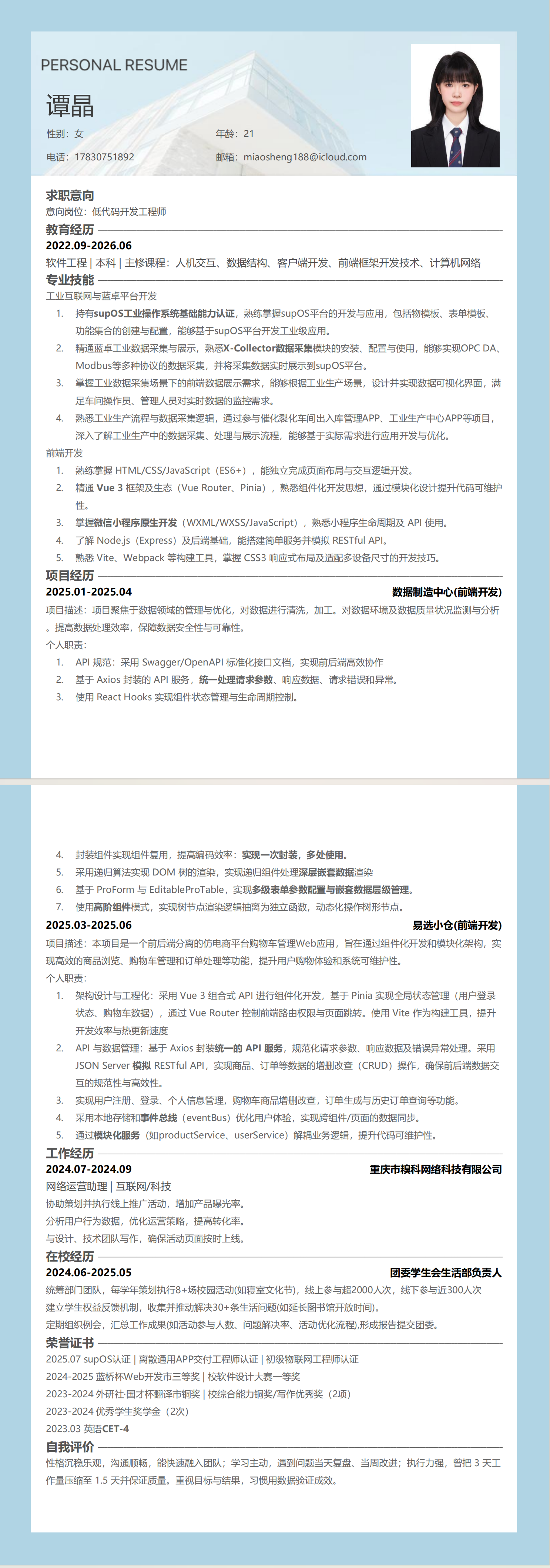简历下载:谭晶-低代码开发工程师_17830751892.pdf