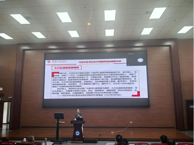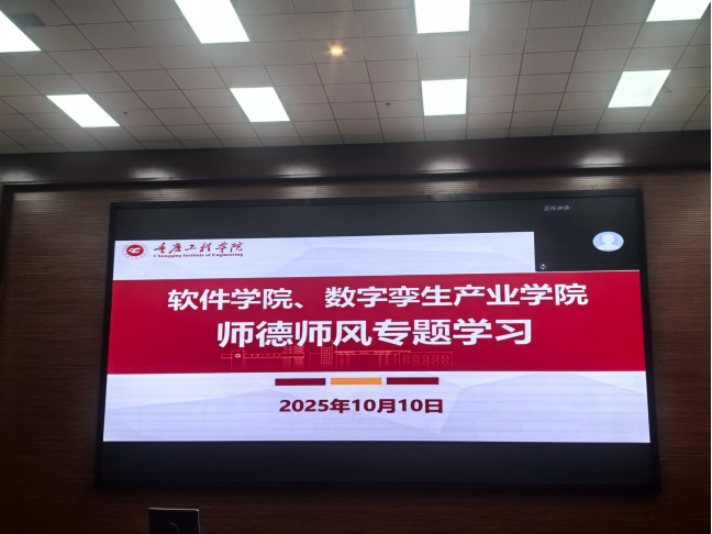 本网讯(文/图 软件学院 孟丽娟)为深入贯彻落实新时代教师队伍建设要求,大力弘扬教育家精神,持续加强师德师风建设,10月10日,软件学院和数字孪生产业学院在7807报告厅组织开展“师德讲堂”主题宣讲,学院党政班子和全体教职工参加。