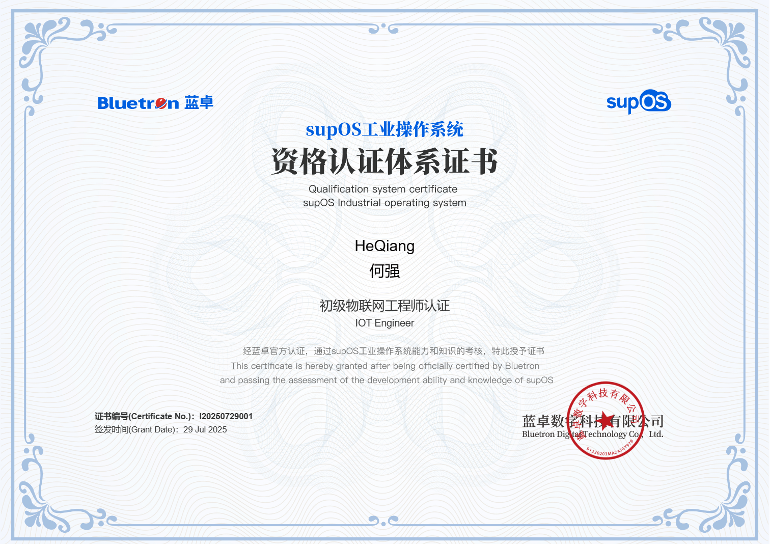 何强(3 项认证:基础、初级物联网、初级 APP)