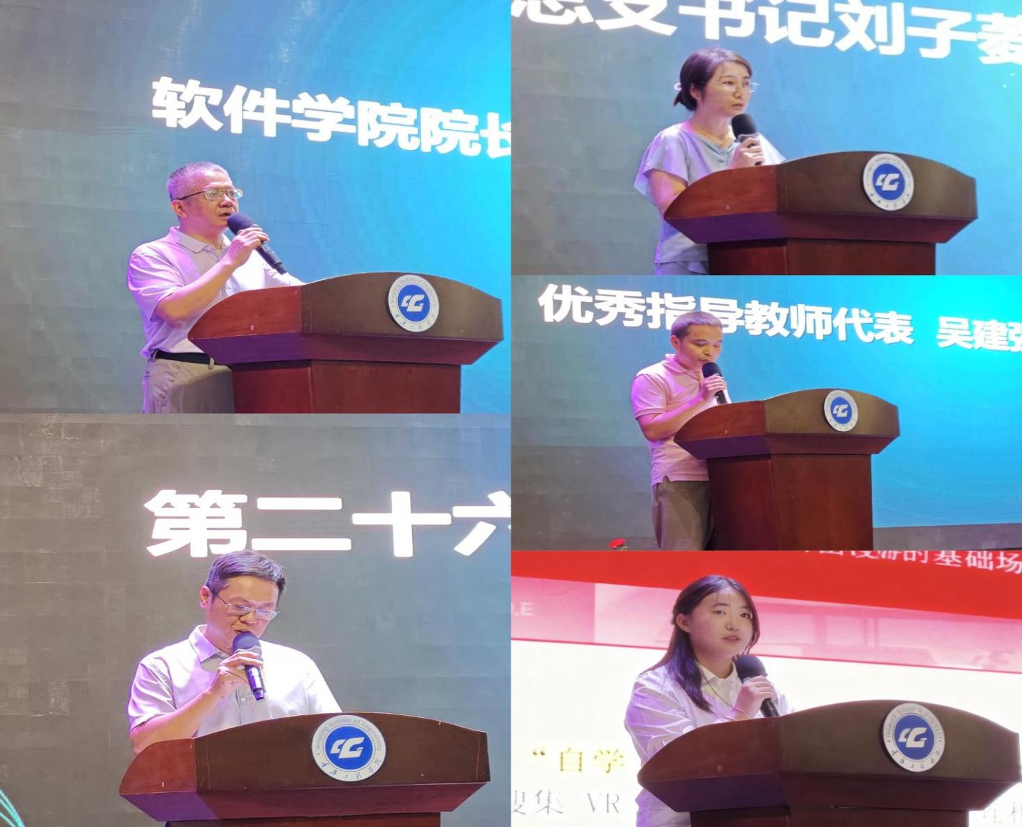 会议中,学院党总支书记刘子菱宣读表彰文件,对2024~2025 学年度学风建设先进班级、优良室风寝室、学习之星、科研新秀、竞赛达人以及第二十六届第二课堂软件设计大赛获奖作品团队颁奖。