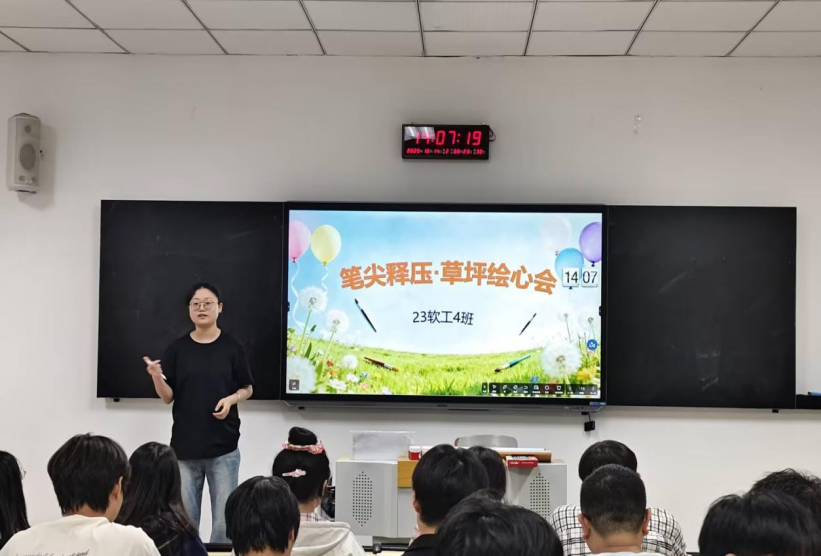 为帮助同学们减轻心理压力、找到情绪释放的轻松方式,同时拉近班级同伴间的距离,23软工4班于2025年10月14日在6109开展“笔尖释压,草坪绘心会”主题心理班会,班级同学全员参与。