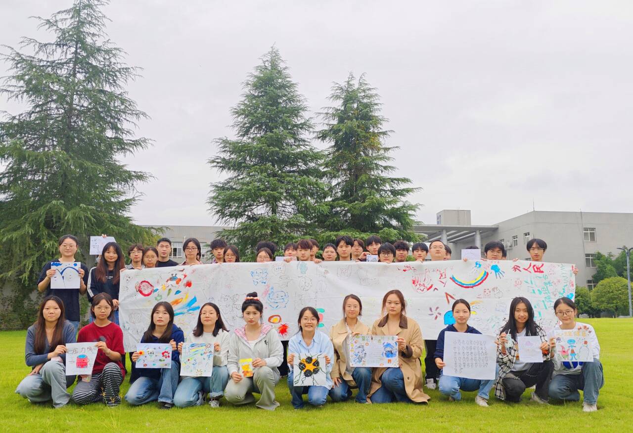 班会伊始,心理委员围绕“笔尖释压,草坪绘心会”主题进行介绍,明确本次心理班会的核心目标—通过互动与创作帮助大家卸下心理负担。随后,心理委员介绍活动流程,并强调其核心在于通过笔尖表达真实情绪与感受。“故事接龙”环节在教室内开展,创作过程中,各小组围绕心理委员给出的故事首段展开思路,通过成员间的默契配合,形成完整的接龙作品。待各组完成创作后,各小组代表依次分享本组作品,生动有趣的内容引发全场同学共鸣,现场掌声持续不断,不仅有效活跃了活动氛围,更在集体创作与分享中拉近了同学间的距离。故事接龙环节结束后,教室内随即启动“绘心创作”环节。心理委员按寝室为单位分发画布、丙烯颜料、马克笔等创作工具,鼓励同学们自由创作。创作过程中,同学们专注投入,充分达成“绘心释压”的环节目标。随后进入交流分享环节,多位同学主动展示作品、分享创作理念,表达绘画带来的情绪释放体验,其余同学认真倾听并致以热烈掌声。