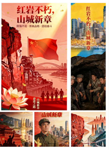 本次活动以“铭记红色血脉、奋进青春征程”为核心主题:“铭记”锚定红岩精神等革命精神的传承,唤醒青年群体对红色信仰的情感共鸣;“奋进”则聚焦青年对未来的笃定追求,鼓励以数字创作具象化成长途中的向上姿态。活动围绕三个方向展开创作:“红岩精神永不朽,山城新章”聚焦红色精神的时代传续,将山城发展的崭新风貌与青年的实践身影相融合;“不惑之年,向光而行”紧扣青春成长的信念进阶,传递青年群体追光而行、向阳奋进的精神态度;“最亮的光,守护奋进”呼应社会奉献精神内核,诠释青年在“被守护”中践行“勇奋进”的责任担当。