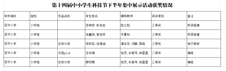 课程成果在重庆市巴南区第十四届中小学科技节中得到充分展现。孩子们带着课堂所学勇敢登台,凭借扎实的技能与创新的思路脱颖而出:任俊楠同学的编程作品《冰壶pick》荣获二等奖,李琳菲、张佑垚等同学的桥梁搭建作品及李辰蕊、廖筠嫣等同学的电子板报、编程作品斩获四项三等奖,用荣誉见证了支教路上的共同成长。