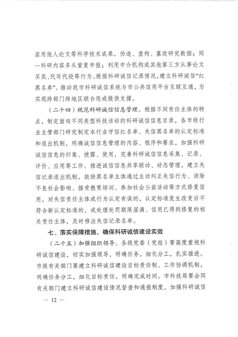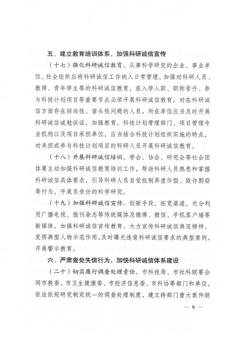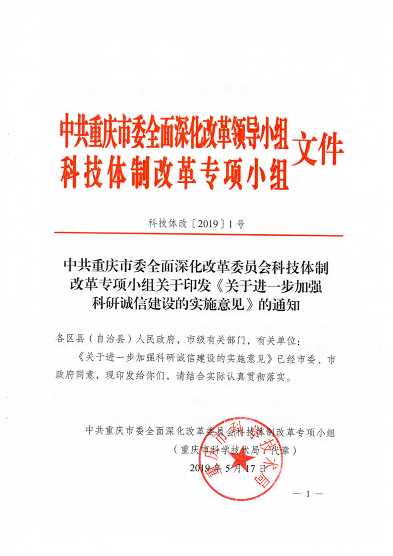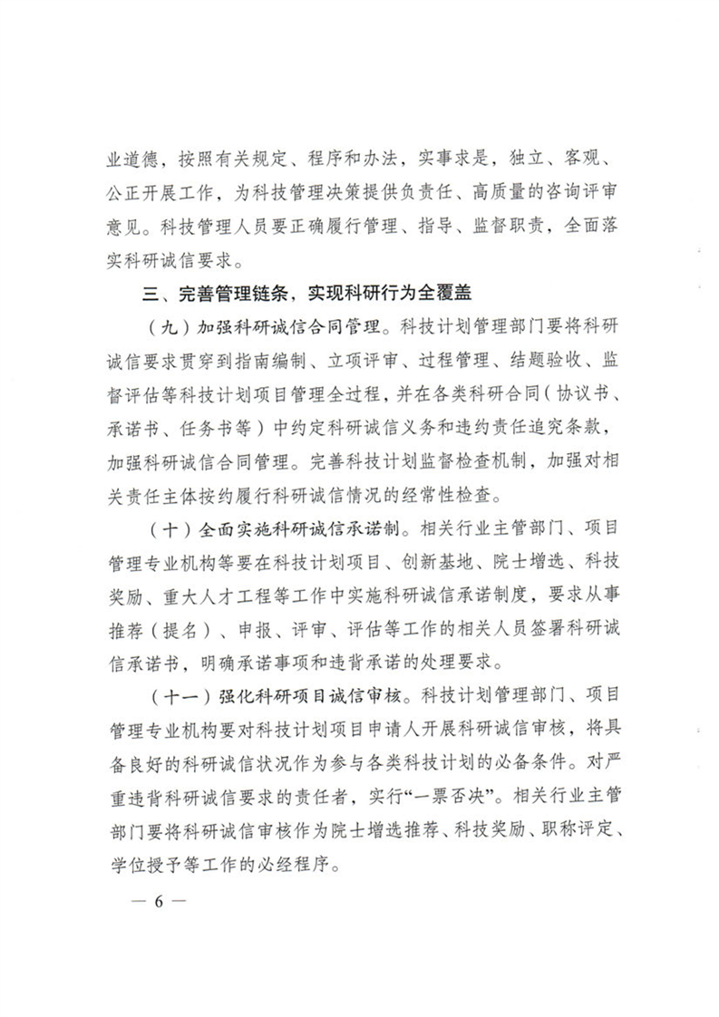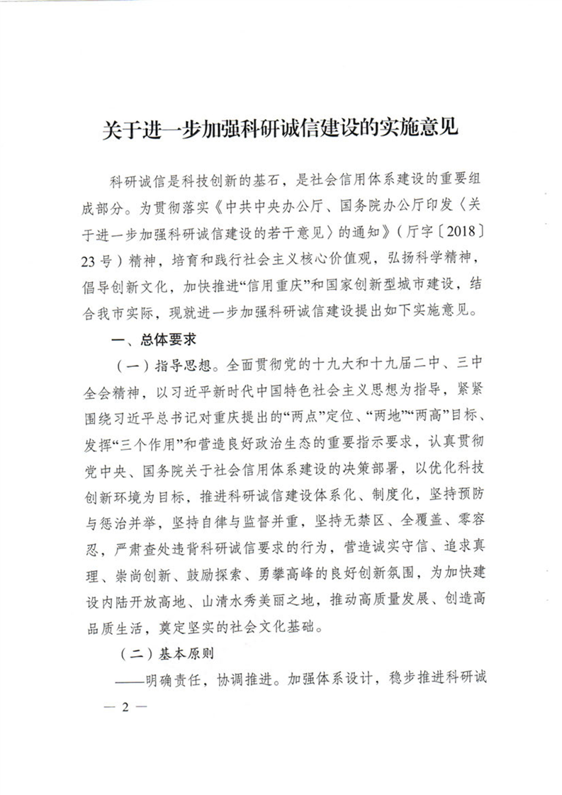 关于印发《关于进一步加强科研诚信建设的 实施意见》的通知