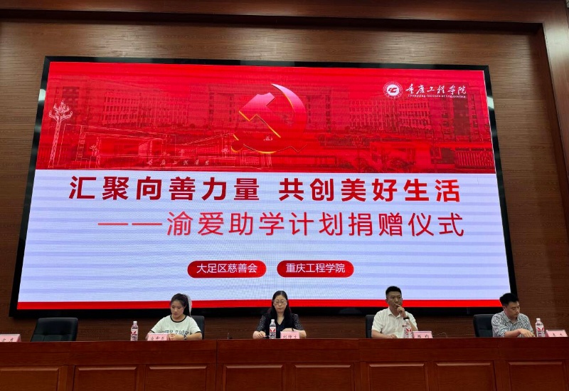 活动在庄严温馨的氛围中拉开帷幕。与会人员共同观看了“山城有爱,善行五进”主题宣传片,感受重庆浓厚的公益慈善氛围。随后,大足区慈善会正式向重庆工程学院进行“渝爱助学计划”捐赠,专项用于支持家庭经济困难学生顺利完成学业,传递社会温暖与关怀。