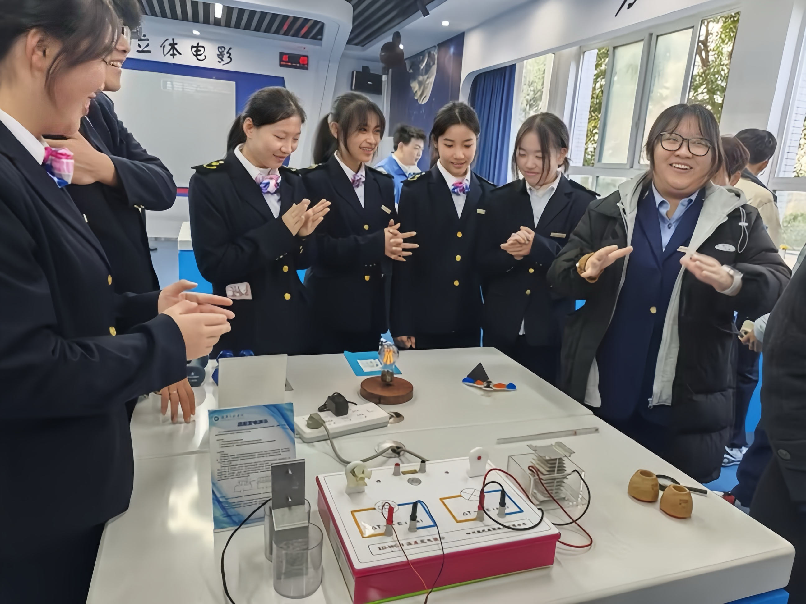 (文/图 基础学院 叶骐瑞)2025年11月20日14:00-18:00,由重庆市大足区职业教育联合会、重庆物理学会、成渝地区大学物理实验虚拟教研室联合主办,重庆工程学院基础学院承办的“带你探索物理世界”科普系列活动,在重庆工程学院大学物理实验教学中心圆满落下帷幕。重庆电信职业学院62名学子在带队教师张晶、陈春雨的带领下,以沉浸式科学探索为系列活动画上圆满句号。