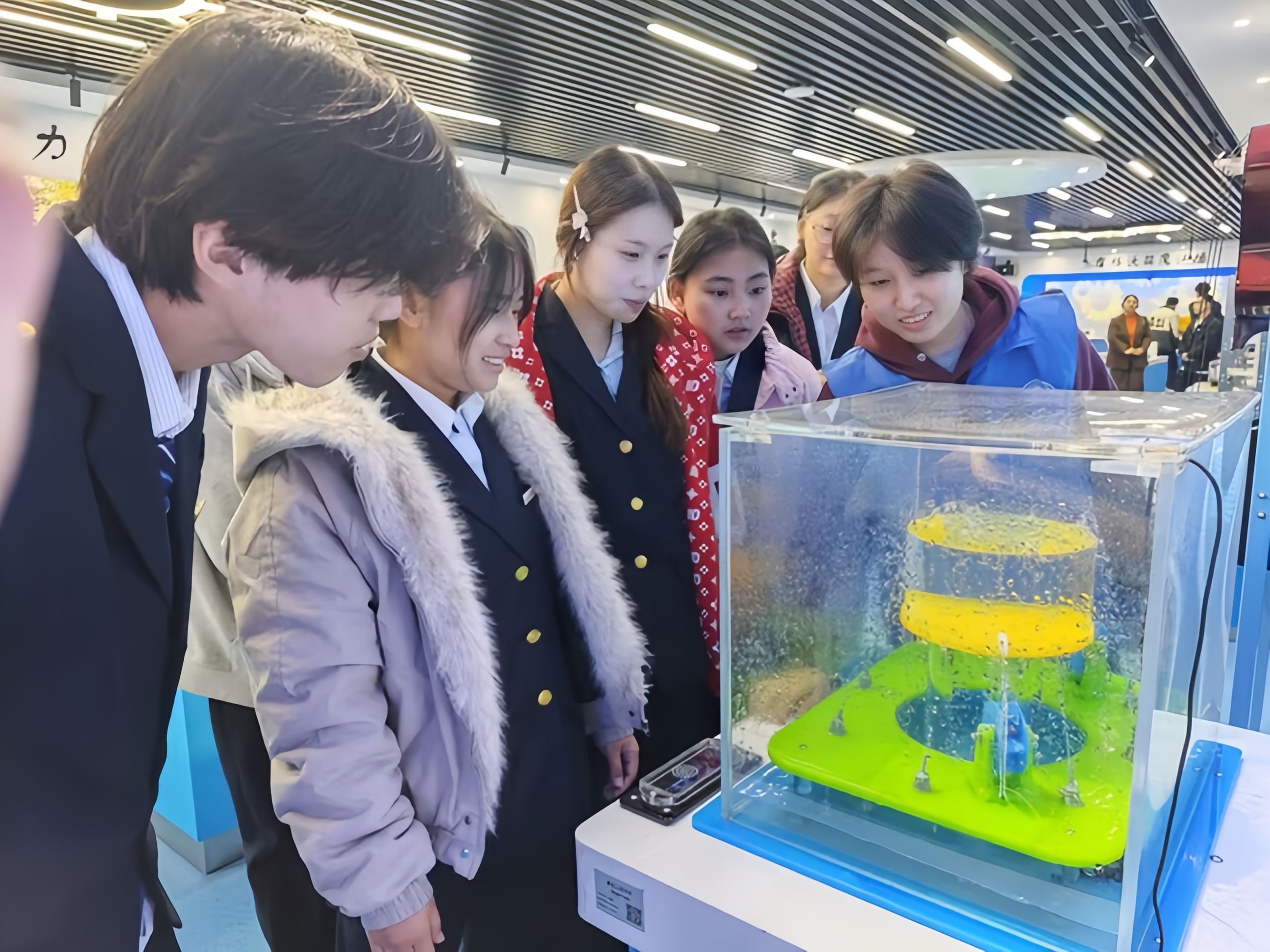 在“探索物理奥秘”板块,50余项科普装置集中亮相,既有鱼洗、电磁炮、同自己握手等传统实验设备,也包含地震演示仪、摩擦纳米发电演示仪等新能源新技术装置。学子们通过聆听专业讲解、近距离观察现象、亲手操作体验等方式,直观探究生活中物理现象背后的原理,共振、电磁感应、能量转化等抽象概念变得生动可感。“水从天上来”的奇妙景象、地震演示仪模拟的震动效果,引发学子们阵阵惊叹,主动提问交流的热情高涨。