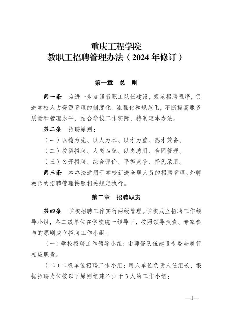 当前位置:首页 > 人事师资 > 重庆工程学院教职工招聘管理办法(2024年修订)