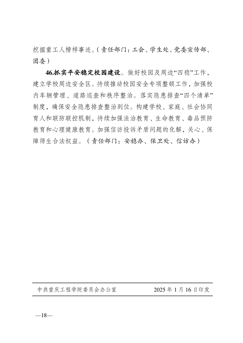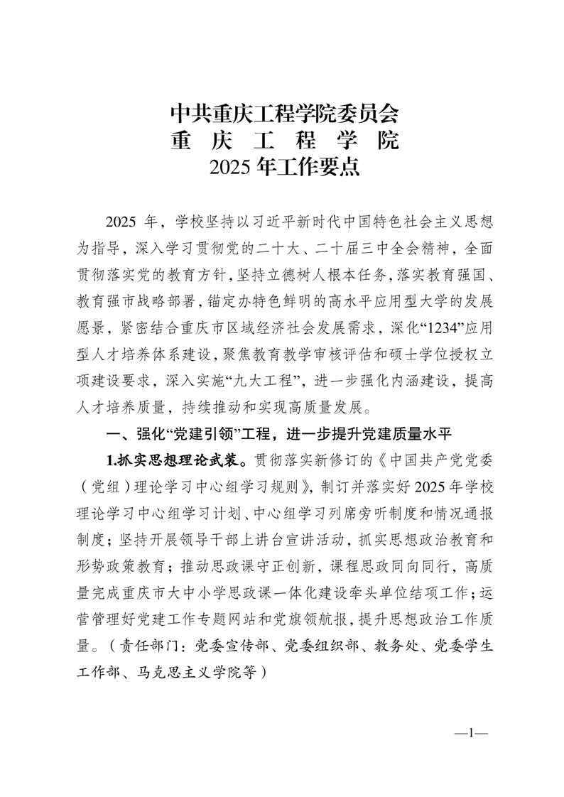 中共重庆工程学院委员会 重庆工程学院2025年工作要点