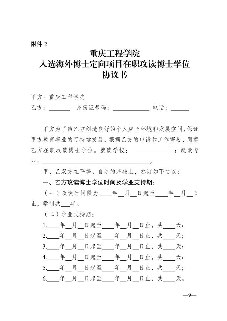 重庆工程学院骨干提升海外定向博士项目实施方案