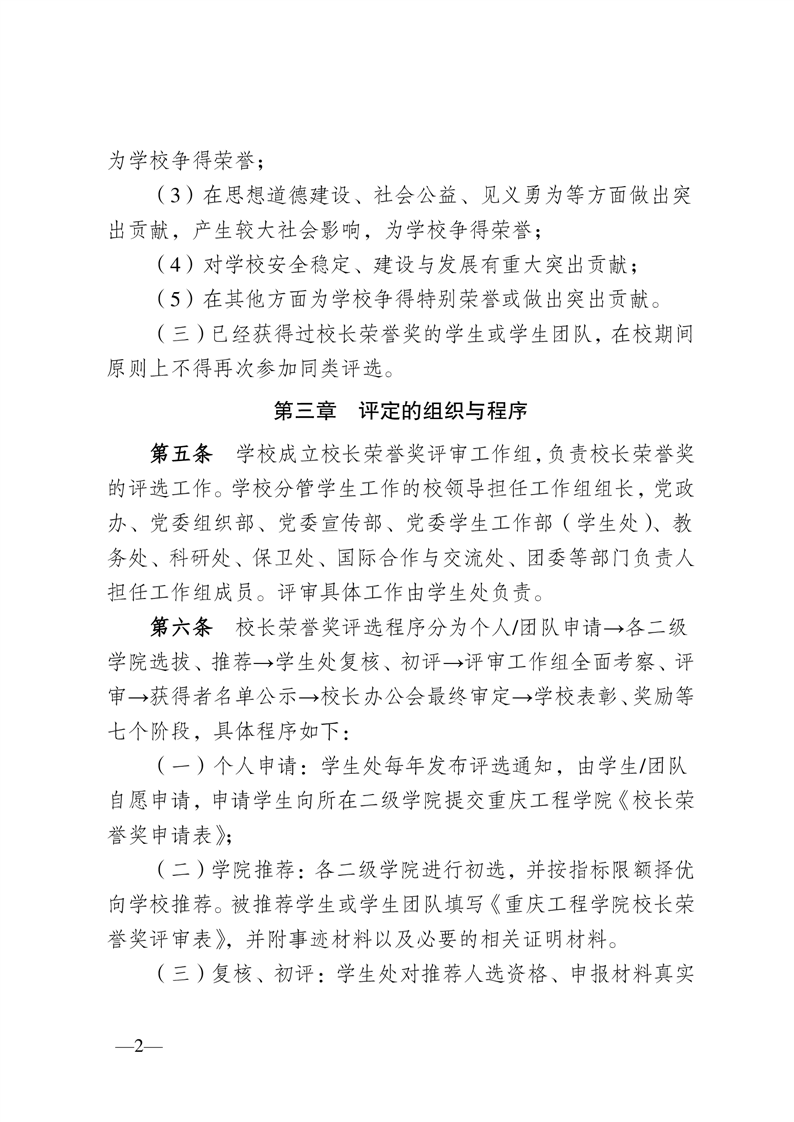 重庆工程学院校长荣誉奖评选管理办法(试行)