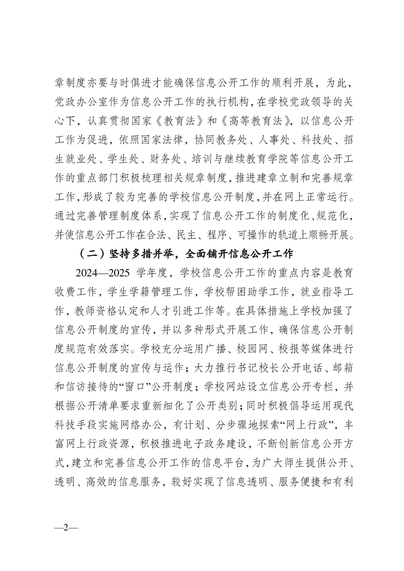 重庆工程学院2024-2025学年度信息公开工作年度报告