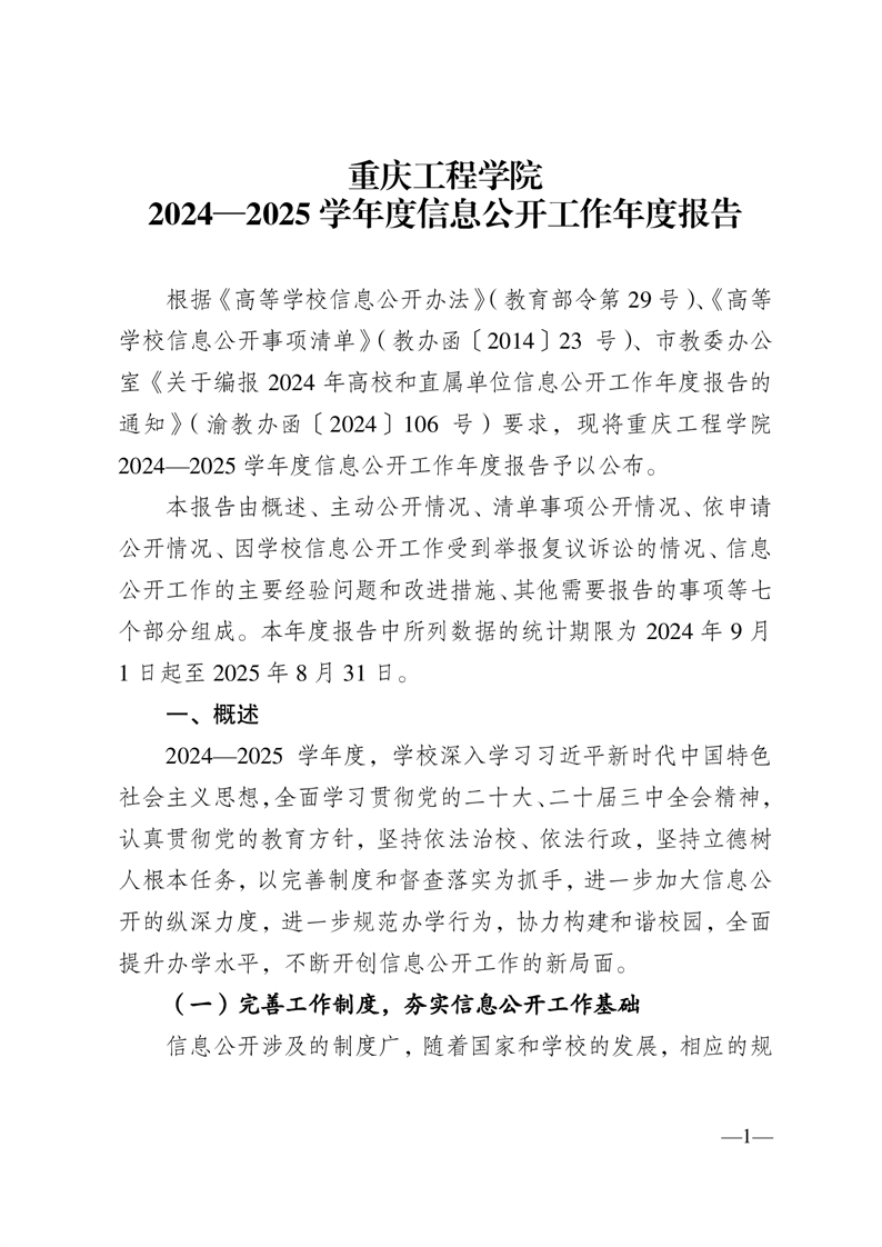 当前位置:首页 > 基本信息 > 重庆工程学院2024-2025学年度信息公开工作年度报告