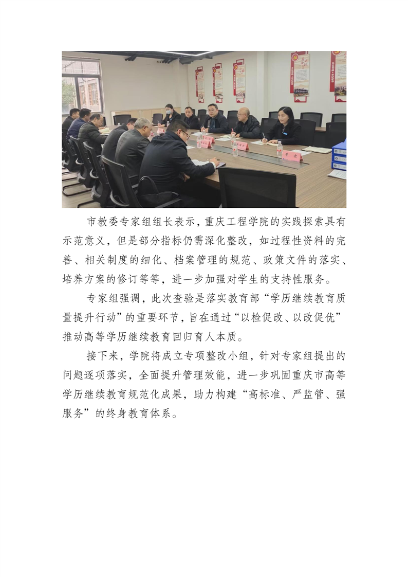 重庆市教委专家组赴重庆工程学院开展高等学历继续教育实地查验工作