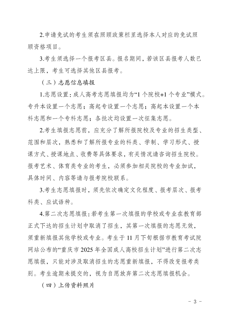 关于做好重庆市2025年全国成人高校招生统一考试报名工作的通知