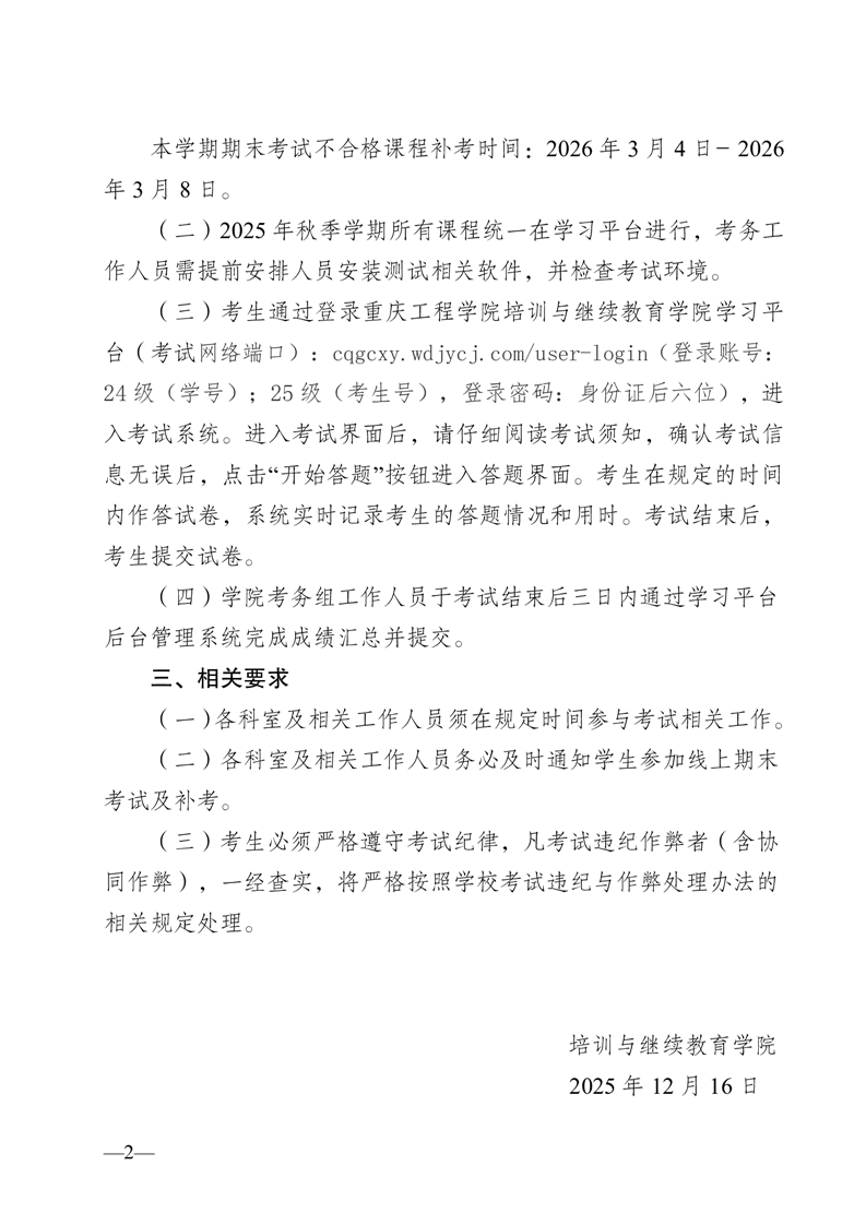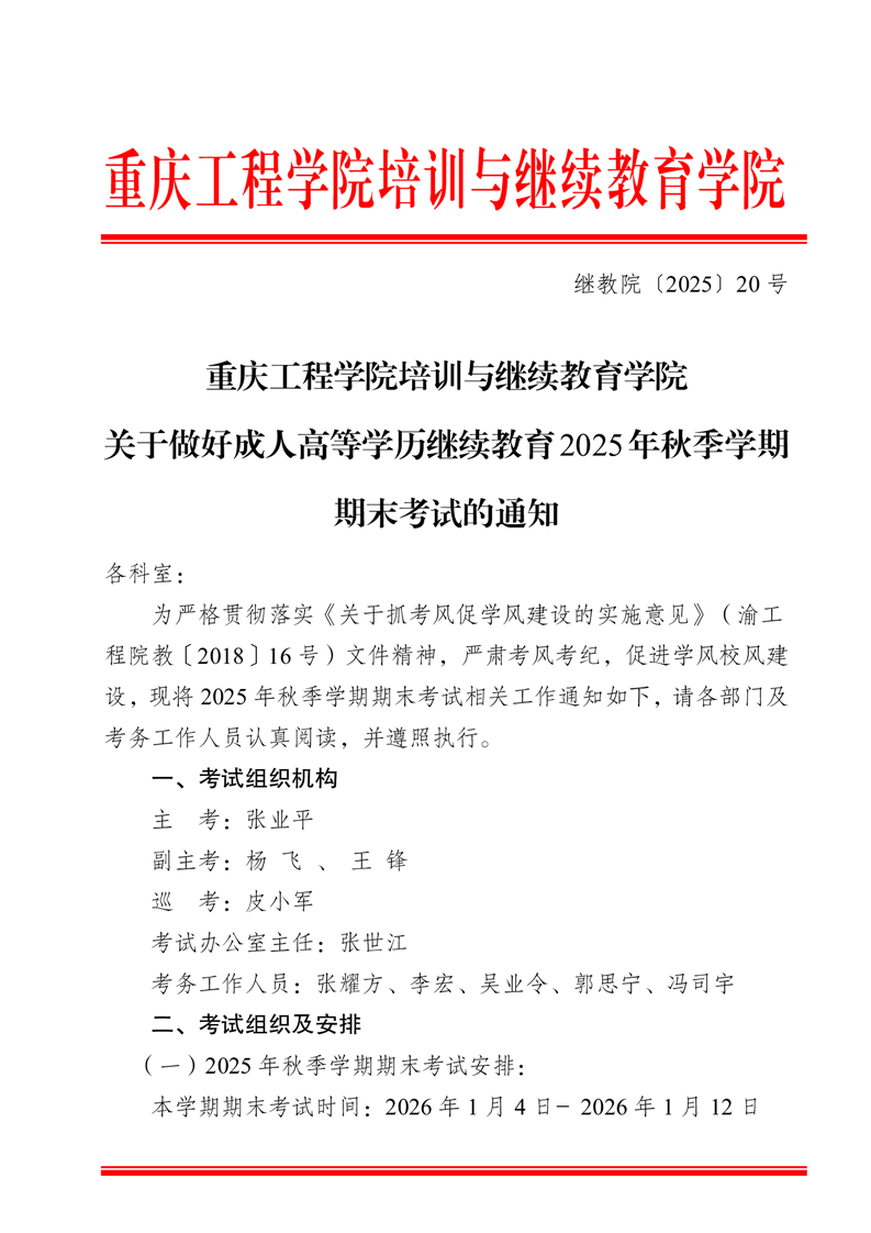 关于做好成人高等学历继续教育2025年秋季学期 期末考试的通知