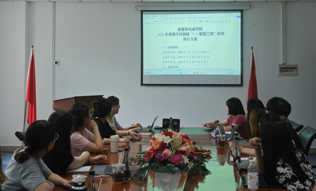 为提升学院教师队伍整体教学能力,帮助项目导师更好地了解专业课程内容,促进专业课程与项目深度融合,有效地推动学院项目制教学改革的顺利开展,切实有效地提升教学效果,学院制定了《2024 年暑期专任教师“1+1 赋能工程”培训执行方案》,根据方案的要求和细则,电子商务系和新媒体系全体专任教师及综合电商项目导师参加了学院培训。