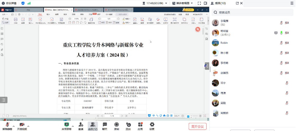 为进一步提升教学质量,强化新入职教师的专业素养与教学能力,网络与新媒体系于2024年9月4日线上召开了新教师培训会议。本次会议围绕23级人才培养方案解读、教学准备细节、教学督导要点以及新老教师交流互动等多个核心议题展开了深入的讨论。