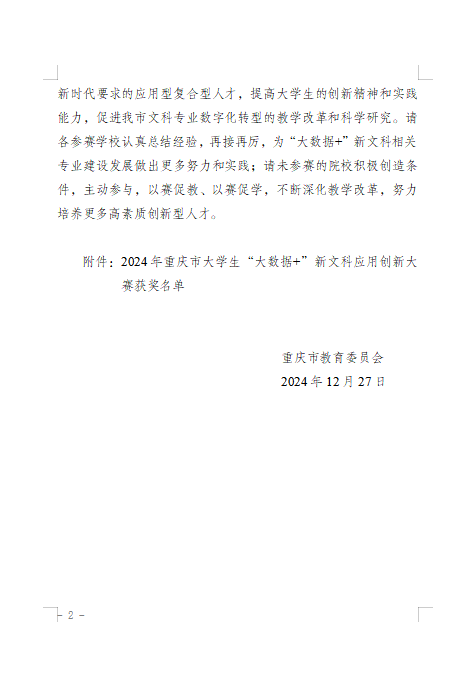 我院学生在2024年重庆市大学生“大数据+”新文科应用创新大赛荣获三等奖