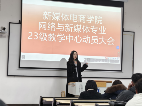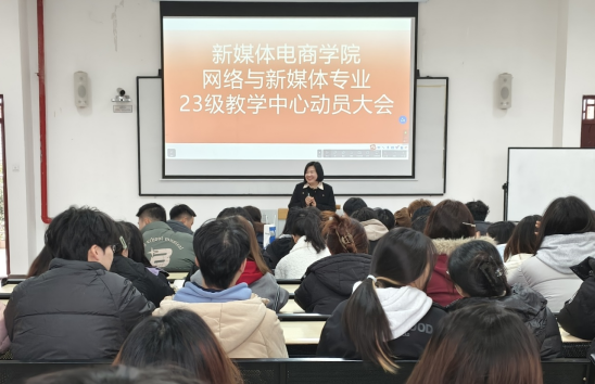 2025年2月24日下午2点,新媒体电商学院网络与新媒体专业23级教学中心动员大会在6201教室隆重举行。本次大会以“凝聚力量,共启新程”为主题,旨在为新媒体创作中心、短剧创作中心及融媒体创作中心的全体学生明确未来发展方向,激发实践热情。三大中心的负责老师——张小玲教授,周熙妍老师,邓宇老师出席并发表讲话,现场气氛热烈,学生反响积极。