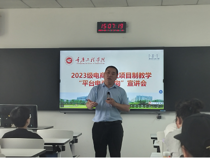 2025年9月17日14:00∽16:30,23电商跨境电商方向项目制教学宣讲会在七教71203教室顺利举行。此次宣讲会由电子商务系与重庆世方通跨境电商有限公司联合开展,旨在深化产教融合,助力学生了解项目制教学考核要求与跨境电商行业实践。