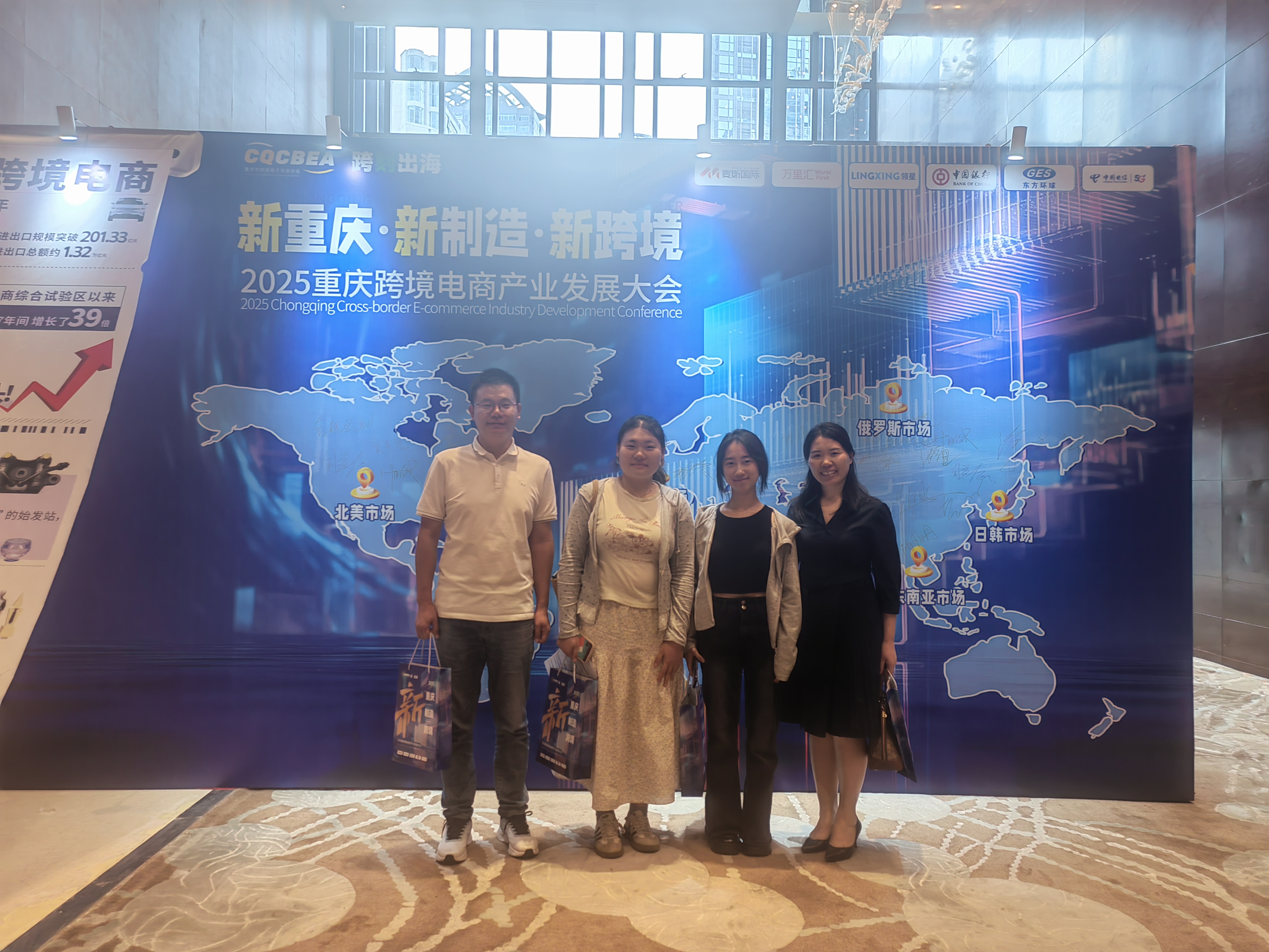 为深入了解跨境电商行业前沿动态,助推我校专业建设与发展,新媒体电商学院院长助理宋超、电子商务系主任曹红梅及学生代表一行,于9月26日13点参加了在重庆解放碑威斯汀酒店举办的“新重庆·新制造·新跨境——2025重庆跨境电商产业发展大会”。