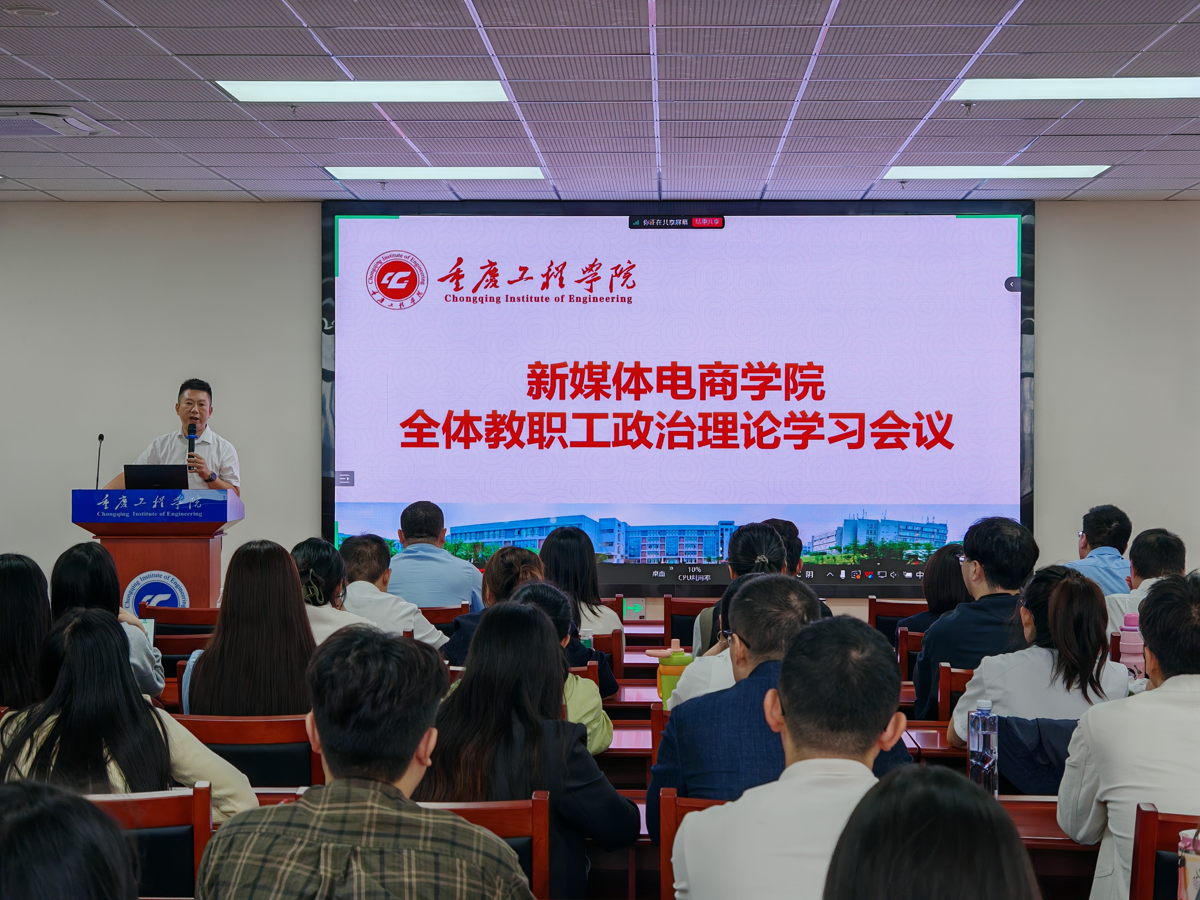 为贯彻学校工作要求,聚焦师德师风建设、产教融合推进及助理学生成长,2025年10月15日,新媒体电商学院在双桥和南泉校区同步召开全院教职工大会暨第6次政治理论学习活动,本次会议由党总支书记邹均主持,全体教职员工参会。