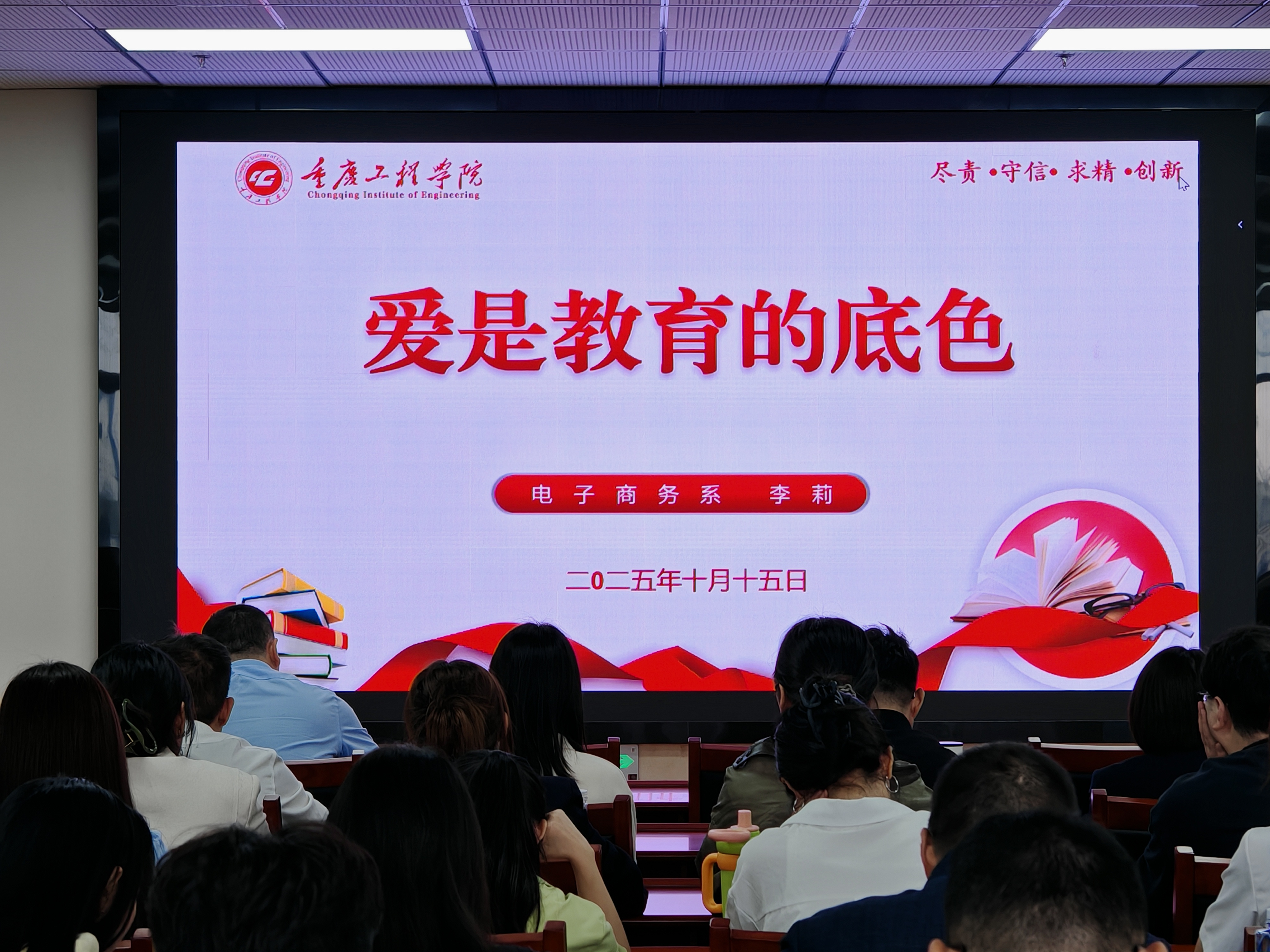 会上,全体教职工在邹均的带领下,重温了“新时代高校教师十项准则”。2位老师分享了学习体会。网络与新媒体系何竞老师以“执新媒体之器守立德树人之心”为题,从课堂引导、课外关怀、专业示范三方面分享;李莉老师则围绕“爱是教育的底色”,阐述对学生、同事及集体的爱,二人分享引发共鸣,切实强化了教职工师德意识。
