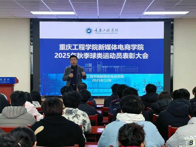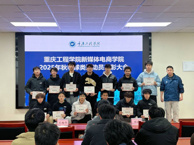 为表彰先进、鼓舞士气,凝聚奋勇拼搏的体育精神,12月18日13:00,重庆工程学院新媒体电商学院2025年秋季球类运动员表彰大会在第三教学楼506会议室隆重举行。本次大会由团委副书记胡奕主持。