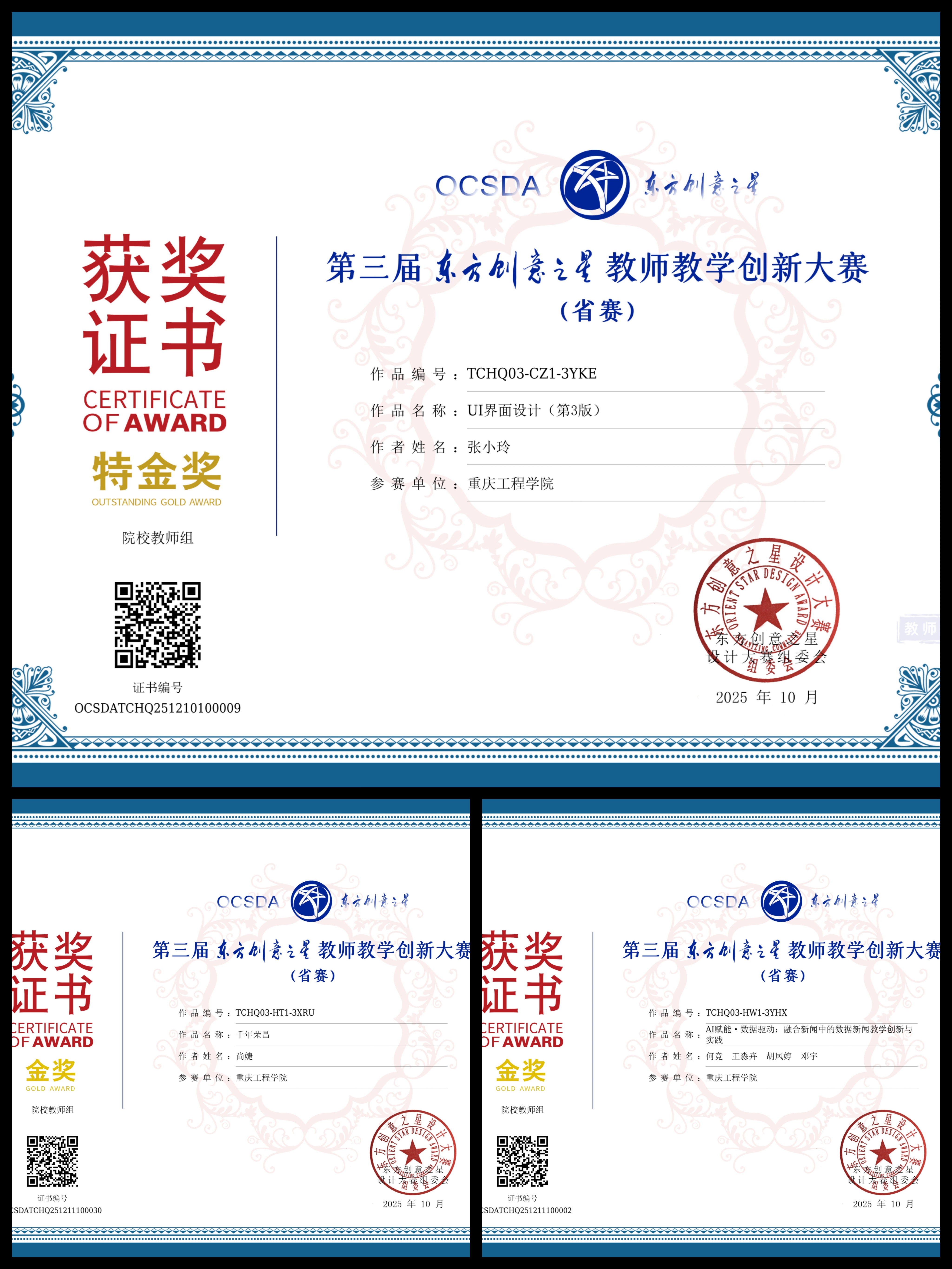 近日,第三届东方创意之星教师教学创新大赛获奖名单正式公布,重庆工程学院新媒体电商学院凭借出色的教学创新成果,共荣获7个奖项,包括特金奖1项、金奖2项、银奖3项、铜奖1项,展现了学院在教育教学改革领域的扎实积累与创新突破。