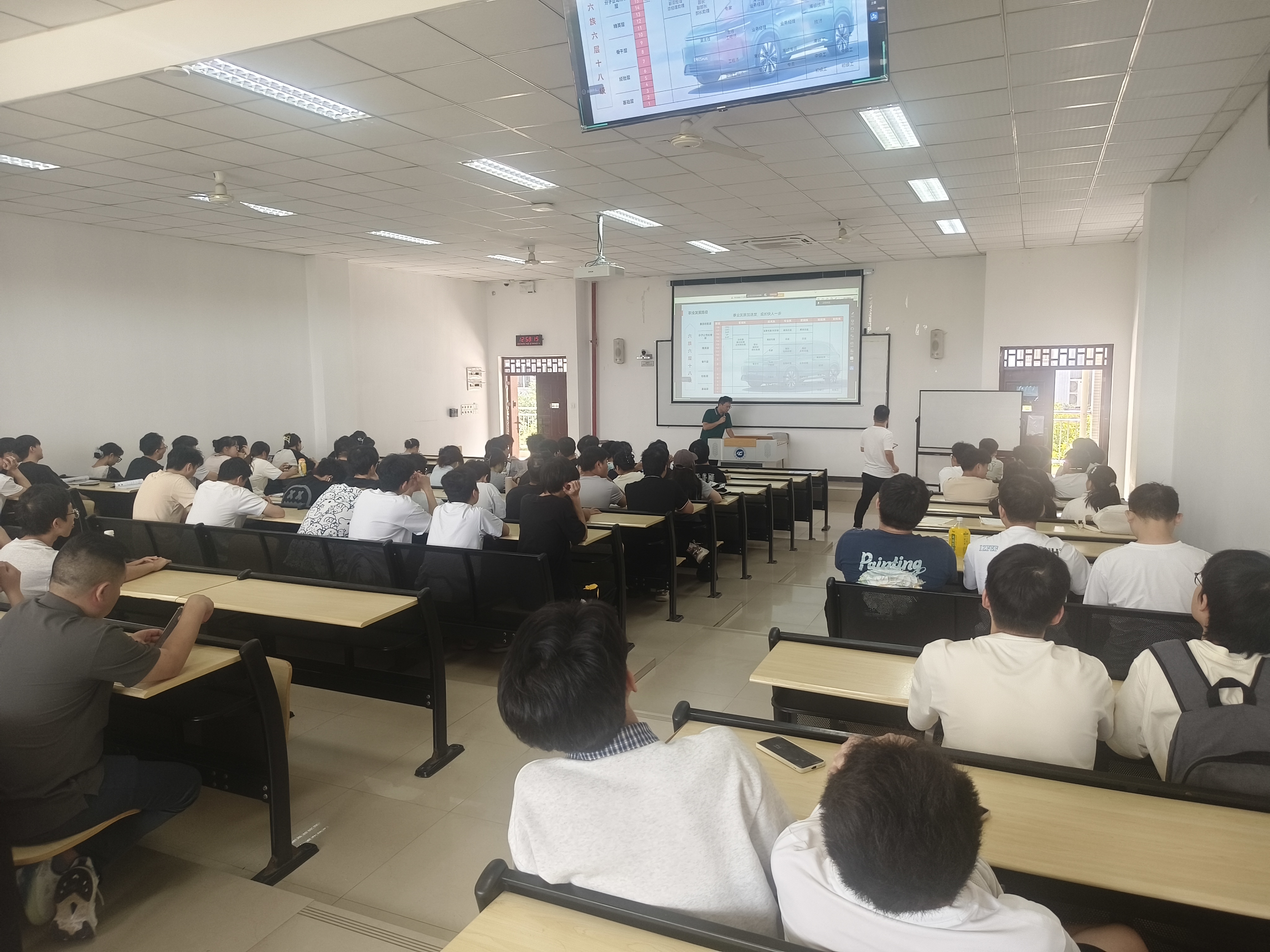 会上,罗经理通过PPT向同学们介绍了赛力斯双福工厂的工作内容、岗位要求、薪资福利、餐饮住宿等情况,重点讲解了公司的职级晋升制度。宣讲结束后,罗经理认真回复了同学们关心的工作内容、实习与就业等相关问题。