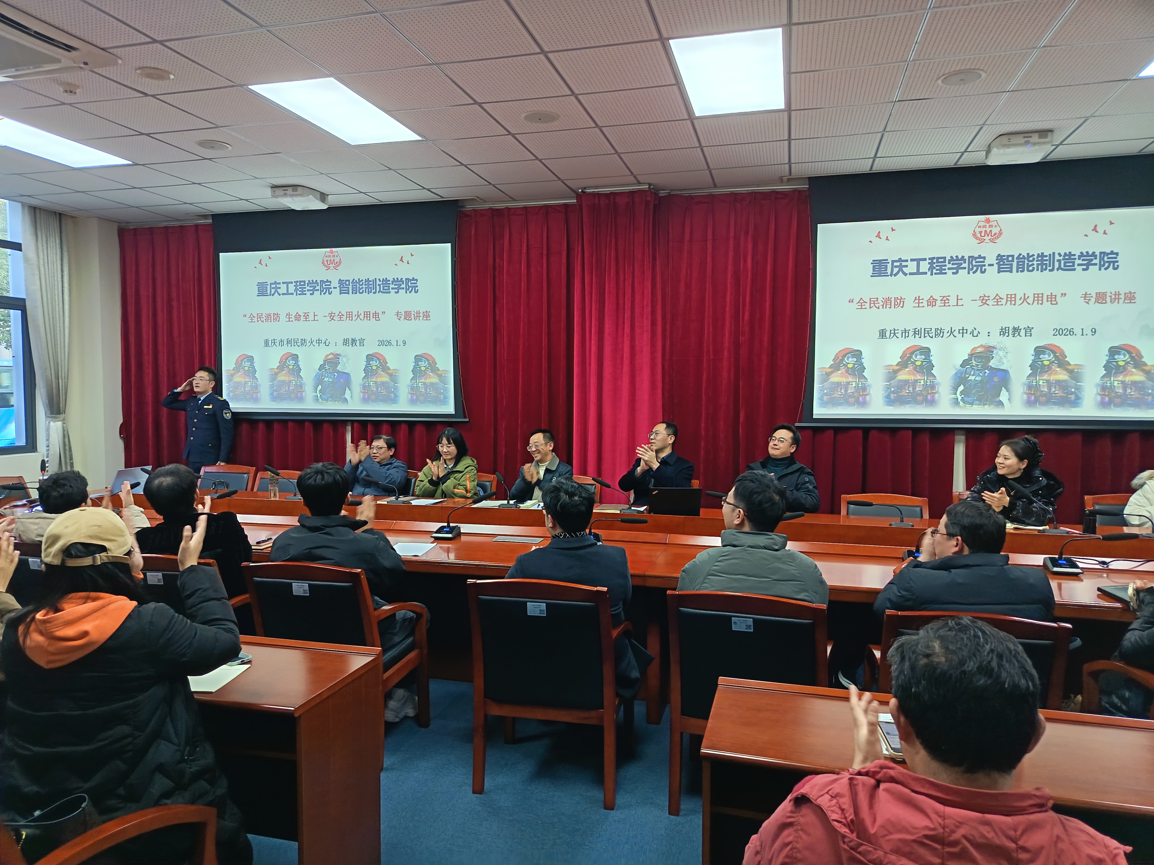 为提升教职工消防安全素质的应急处理能力,智能制造学院于19日在行政楼第一会议室开展消防安全培训。邀请了重庆市利民防火中心金牌教官部胡云波为主讲。学院全体教职工参加培训。
