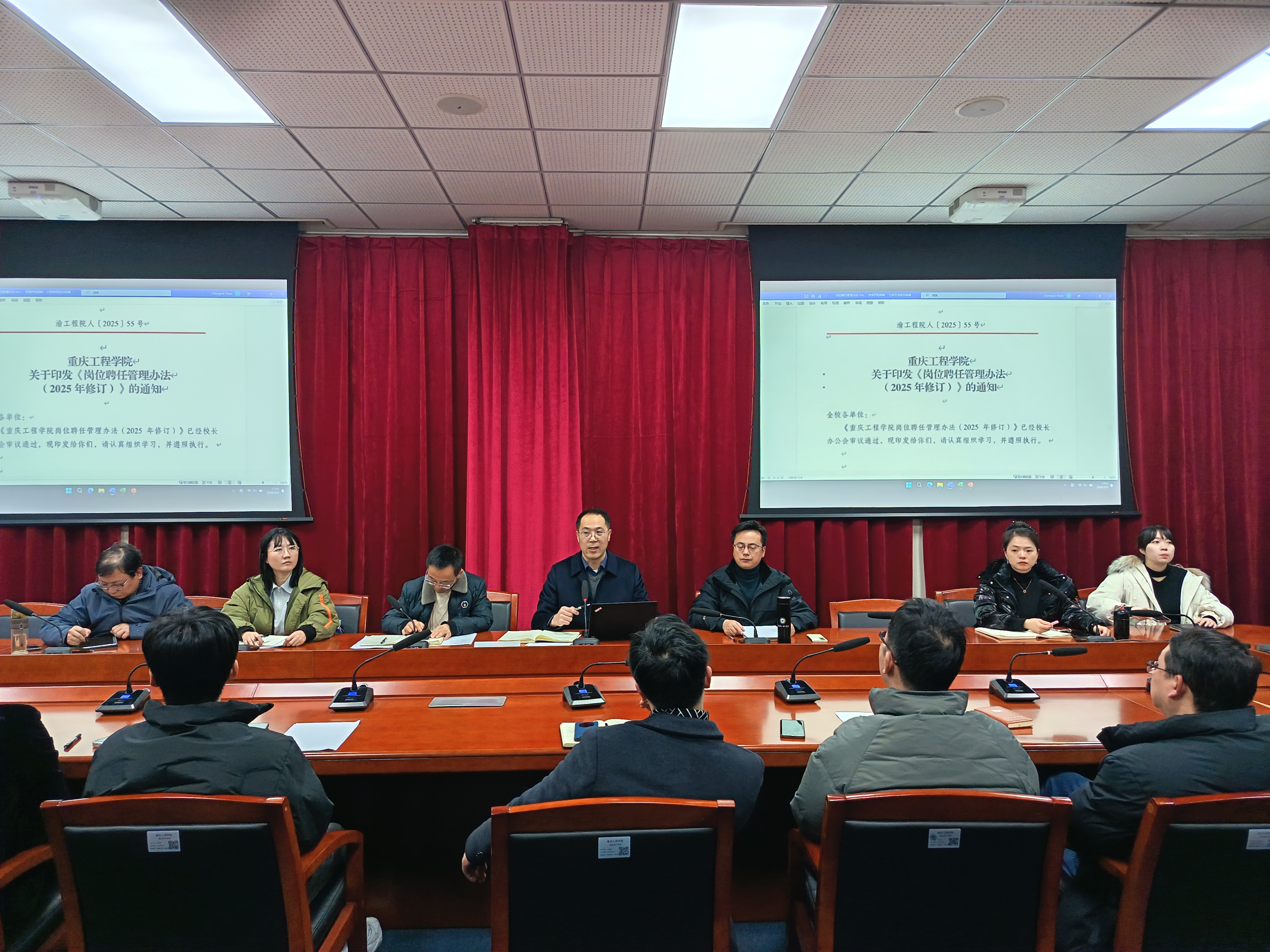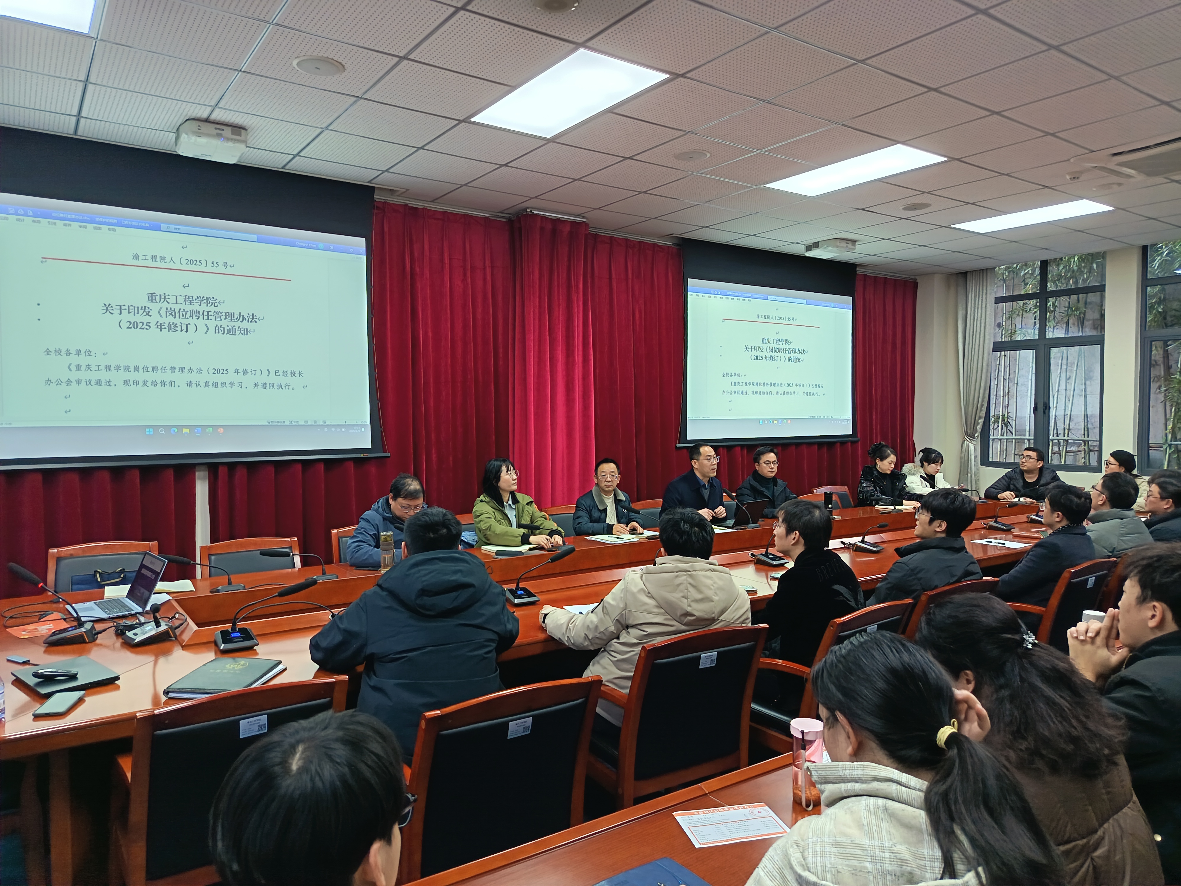 为进一步贯彻学校修订的岗位聘任政策,1月9日下午,智能制造学院在行政楼第一会议室集中学习《重庆工程学院岗位聘任管理办法(2025年修订)》。学习由学院副院长陈成瑞主讲,全院教职工参加学习。