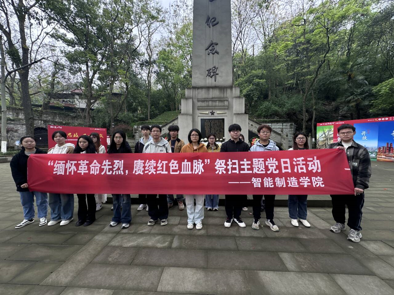 为深切缅怀革命先烈丰功伟绩,弘扬爱国主义精神,传承红色基因,筑牢理想信念根基,进一步强化党组织成员的历史责任感与时代使命担当,智能制造学院自动化与机器人工程学生党支部于 4月2日在南泉革命烈士陵园开展“缅怀革命先烈,赓续红色血脉”烈士陵园祭扫主题党日活动。学生党员、预备党员、发展对象、入党积极分子及入党申请人、学生党员实践教育分中心参加此次活动。