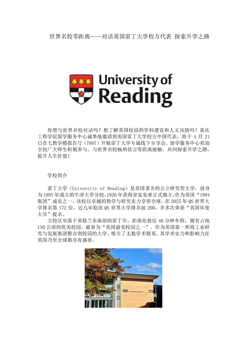 世界名校零距离——对话英国雷丁大学校方代表 探索升学之路