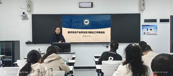 (图/文 数字孪生产业学院 石磊)11月12日下午,数字孪生产业学院在7609教室召开毕业班实习与就业工作推进会。会议由数字媒体技术系主任石磊主持,毕业班辅导员彭丽及全体实习指导教师参会。