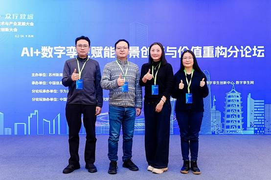 (图/文 数字孪生产业学院 石磊)12月4日,第二届数字孪生技术和产业发展大会暨场景培育与开放创新大会在苏州工业园区举办。大会由中国信通院数字孪生创新中心、中国互联网协会数字孪生技术应用工作委员会、中国信通院江苏研究院、苏州新建元数字科技有限公司等单位联合举办。数字孪生产业学院院长张晓颖带领院长助理刘阳,学科带头人陶雪娇教授和数字媒体技术系主任石磊陪同参加本次大会。
